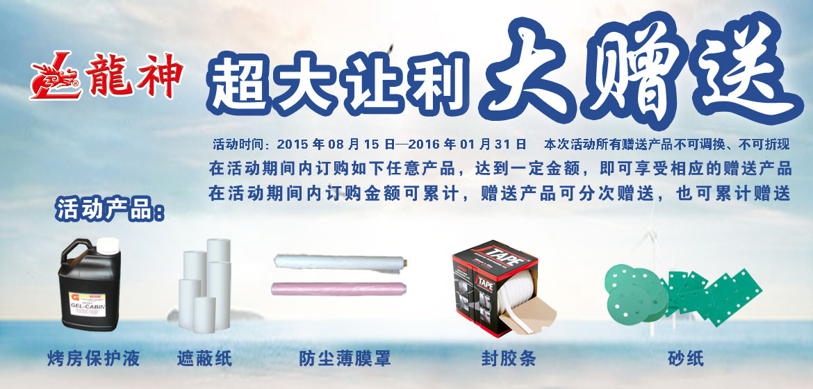 超大讓利﹒大贈(zèng)送 2015-08-17 32021 訂購(gòu)產(chǎn)品:1、烤房保護(hù)液; 2、遮蔽膜; 3、遮蔽紙; 4、泡沫膠條; 5、砂紙。 在活動(dòng)期間內(nèi)訂購(gòu)如上任意產(chǎn)品,達(dá)到下表累計(jì)金額,即可享受相應(yīng)的贈(zèng)送產(chǎn)品。